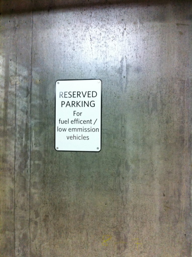 But I’m pretty sure that sign would get laughed out of Texas and Arizona. And if my grandpa wants to roll up in his ’73 New Yorker, should he have to park in East Jesus while the yoga biatch with 3% body fat in a hybrid Lexus SUV gets “reserved parking”? We’ve clearly all gone crazy.