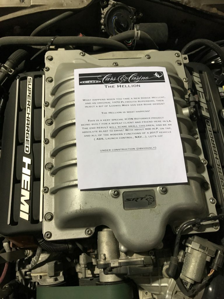 ICON’s 1970 Plymouth Superbird that’s getting a little upgrade with the help of a Hellcat engine. Translation: classic car with HUGE wing gets 800 hp modern engine and requires an adult diaper. BADASS!