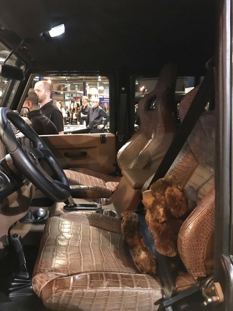 I also saw my friends from East Coast Defender at this party. (Don’t ask me why my photos suck, I think I got tequila on the lens. Whatever, it was a big night) This insane project is for a woman in Montana to drive on her ranch, but check out the best part: