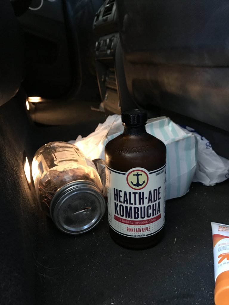 Of course, there are the more obvious examples of things that shouldn’t be left in backseats– a laptop, a camera, a bag of groceries or a sack of sex toys. Those would be bad too. However, items like that are for amateurs, it takes a REAL moron to forget Kombucha.
