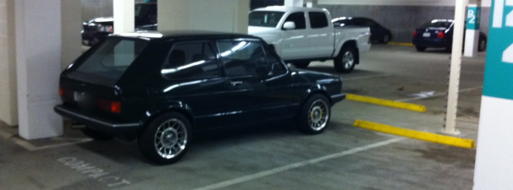 Even the dorky VW rabbit can cross over to pimp town. This fearless Angelino grabbed his, buffed it until it glowed and then parked it with pride in the dreaded compact spot in Santa Monica Place: