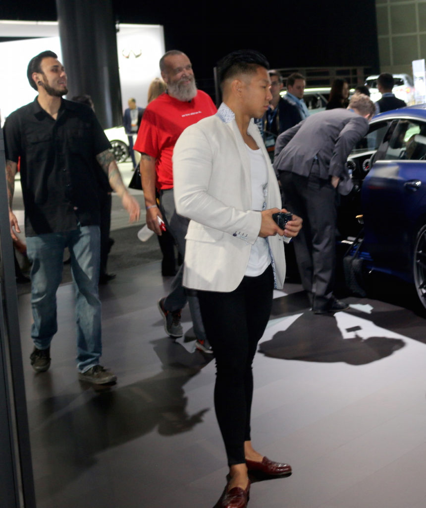 Cars, Trucks and SUVs! Electric, Hydrogen, and New Technologies! The automotive industry is packed with excitement, particularly during Auto Show Season. Leading the stateside kickoff is the LA Auto Show 2018, whose press days are bustling with car freaks. And the only thing that’s more entertaining than the vehicles themselves are the outfits that surround them. Needless to say, I snapped all of the Dudes (and of course the Douchebags) to share with you, so let’s do this!