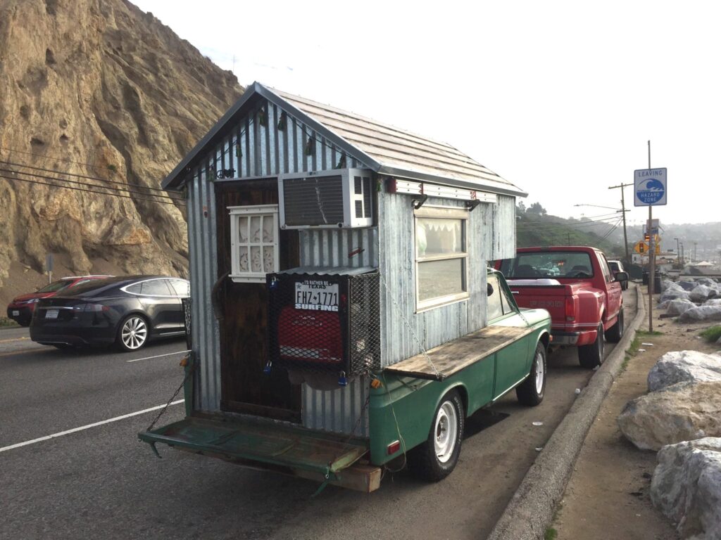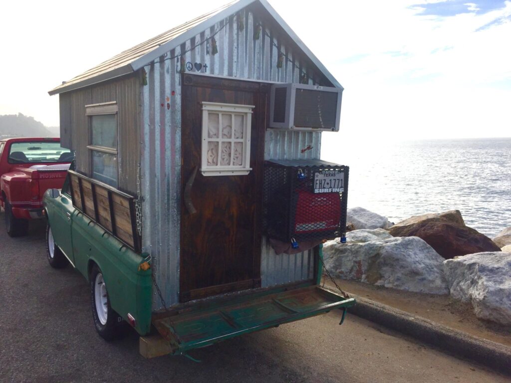 As predicted in my last post (Pray For Rain), our incredible Los Angeles Rain Fest 2017 continues. It was fun for a while, but after the Netflix queue is caught up and you’ve eaten your bodyweight in Pirate Booty, a girl’s gotta get outside! So during a recent gap between deluges, I headed down to the beach to reacquaint myself with salt water when what to my sore eyes did appear? An airtight, cozy Beachside Cabin? Don’t mind if I do: