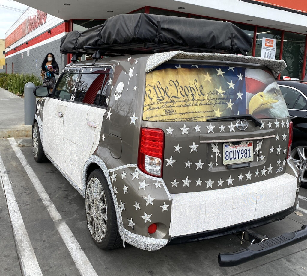 My mind went to — don’t get me wrong… BEAUTIFUL in her own way — overweight, white, style-conscious… possibly supporting an insurrection… which would conflict with the possibility of transgender… and betting a paycheck on multiple piercings and tattoos (#Respect)… definitely spending her/their somewhat limited funny money toward vehicular self-expression (not yet a crime in 37 States).
