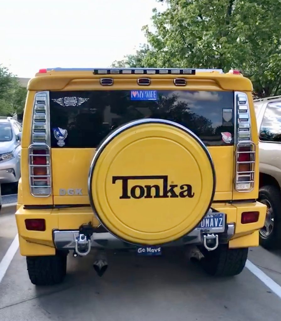 From the ‘I Love My Wife’ confession/disclaimer to the gratuitous chrome light covers, it’s really something. Why, are those dragon head exhaust pipes? You shouldn’t have. But I’m REALLY glad you did! The vanity plate? Dallas MAVZ, of course. Less original is the Tonka wheel cover, but I can let that go. Especially when I consider what I mistakenly assume to be three chrome letters that are some magnificent monogram, but then I realize it’s far more likely/awesome if it’s the “Dirty Ghetto Kids” acronym. Sadly, I’ll never know.
