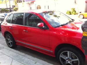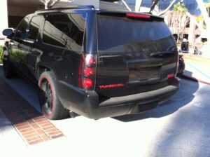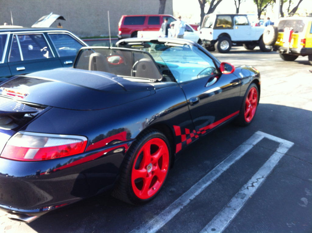 Anyway, so the brothas at the gym have all been wearing black on black for a few months. Then one day..like someone send a memo, they all swapped their white laces for red. This made them look completely stealth and bad ass– instantly. And, that very same day, I go out to the parking lot and see this: