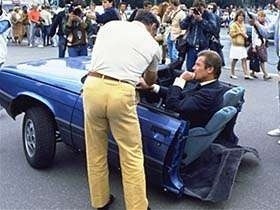 Roger Moore taught me that you don’t have to drive a supercar to be sexy. As illustrated in this badass photo of Moore & an AMC Hornet: