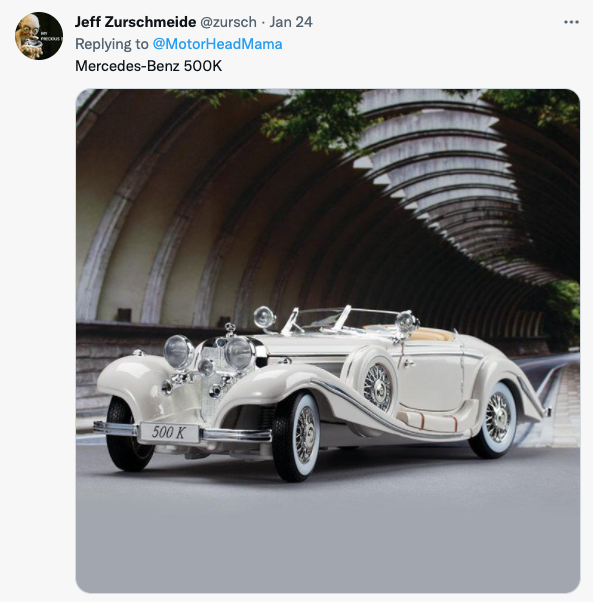 Jeff’s a top bloke, a true car dude, and also happens to edit The Star, which is the Mercedes Club of America’s magazine, which doesn’t necessarily make him wrong. The 500 K is a stunner! But we both know that it would be better in silver.