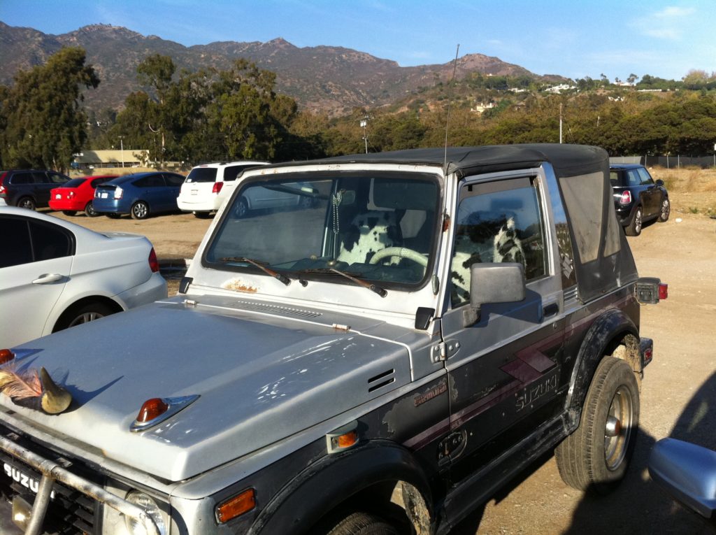 That’s right, it’s a Suzuki Samurai– briefly outlawed in the US due to its high center of gravity– is apparently alive and well in Mexico. I saw its owner park it across the street from a swanky restaurant in Malibu, wearing his valet uniform (I’m not just being racist, I spoke to him and he no habla English bien). So this guy parks Lambos for a living and rocks the Samurai at home. He’s my hero. Want more?